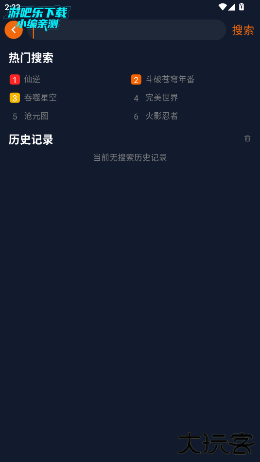 2.输入你想看的动漫的关键字点击搜索。