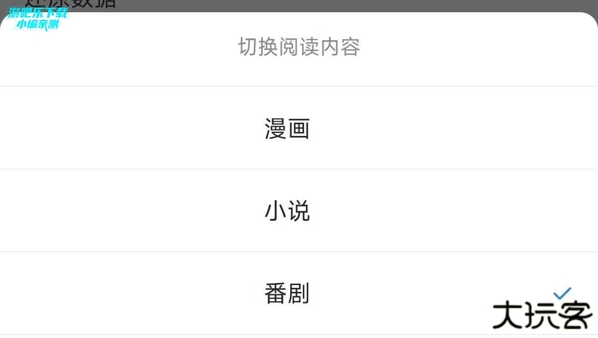 在个人中心界面我们可以切换阅读内容,可选漫画、小说和番剧。
