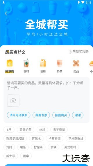 3、点击全城帮买,填写自己想买的东西,并提交即可等待快递小哥送货上门