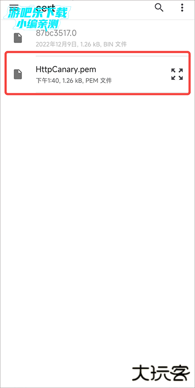 cert文件夹打开,找到.pem文件安装即可。(手机不同可能文件路径也不同,具体情况随机应变。)