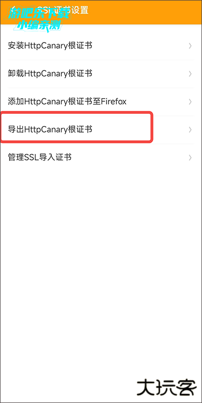 3、 点击导出httpcanry根证书