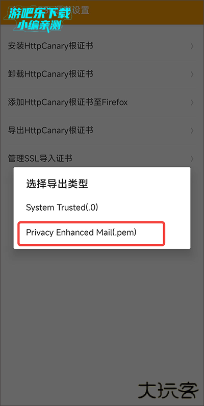 导出HttpCanary证书(.pem)