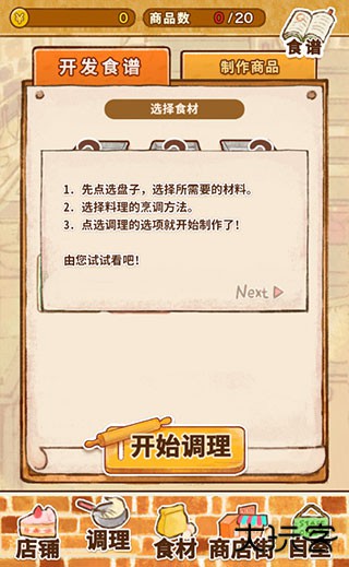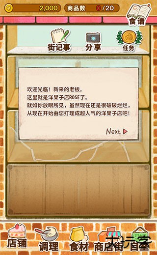 1、进入洋果子店游戏最新版,点击【NEXT】查看引导。