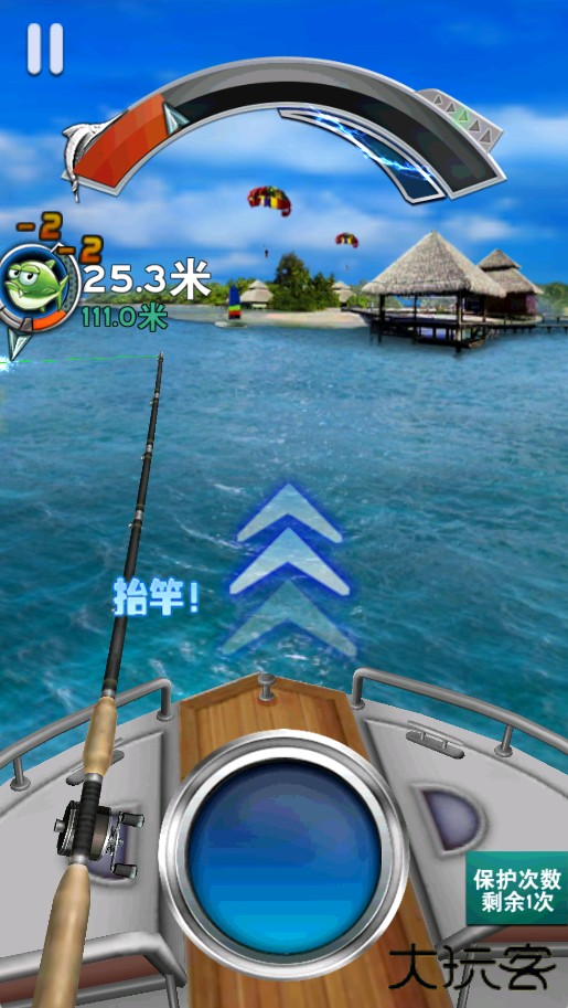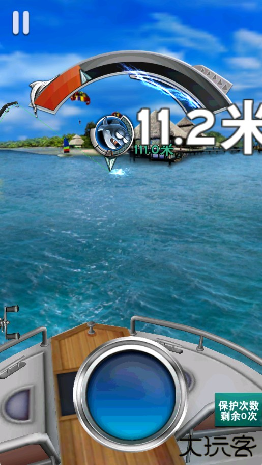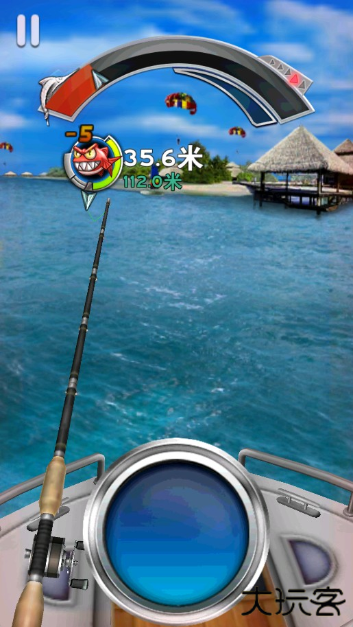 4、怒气值满后,迅速抬杆并疯狂点击按钮,即可快速将鱼拉近。若失败,重复上述操作。