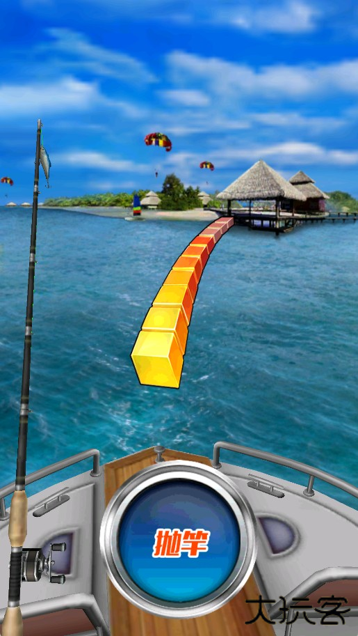2、当进度条滑动到最远端时,点击屏幕完成甩杆。