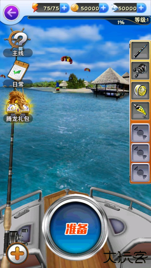 7、可使用金币或钻石购买更高级装备,大幅提升钓鱼成功率。