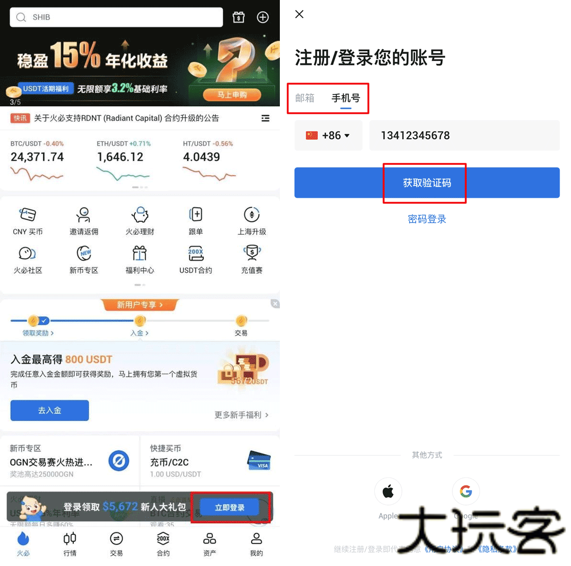 1、打开huobiglobal APP,点击下方【立即登录】,输入您的邮箱地址/手机号码。点击【获取验证码】,完成拼图验证,您将在邮箱或手机收到六位数的验证码。请在30分钟内输入该验证码,然后点击【提交】。