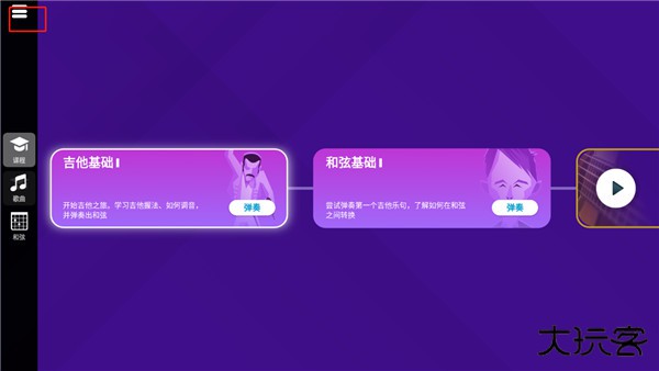 1、打开在本站下载的simplyguitar,进入首页点击左上角。