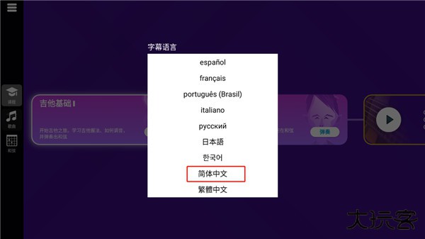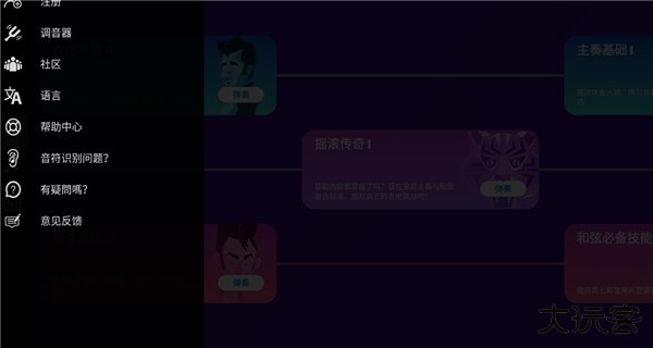 7、点击左上角,我们可以自己设置语言、调音器等,还能进入社区和其他吉他爱好者一起学习。