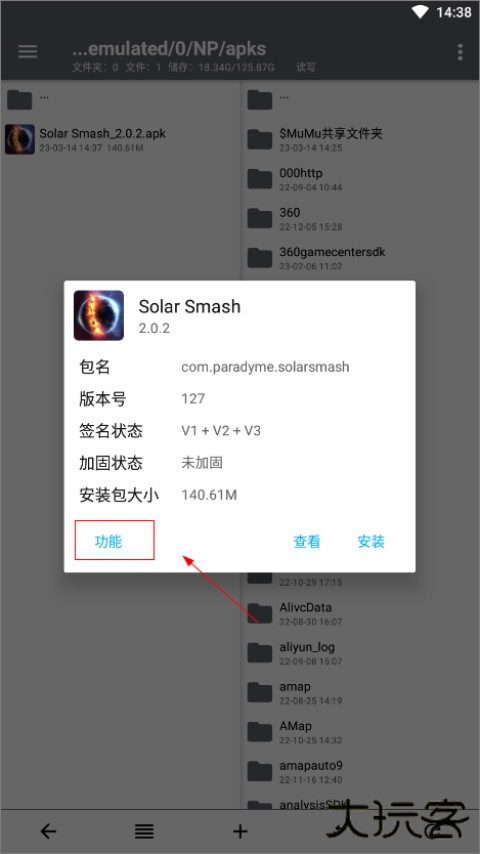6、点击提取好的apk文件,然后点击功能;