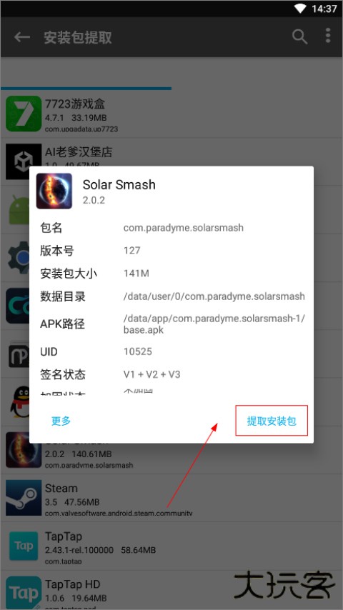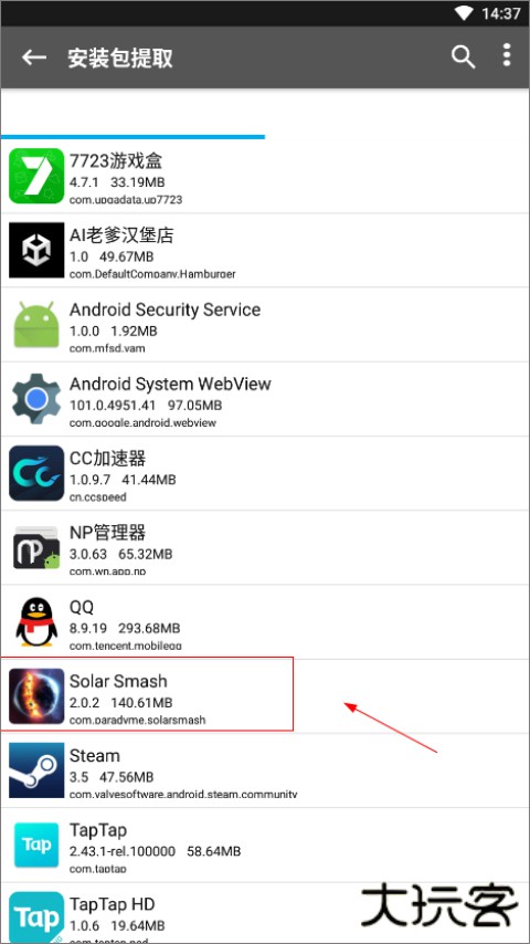 3、选择一个手机上要提取的应用或者游戏;