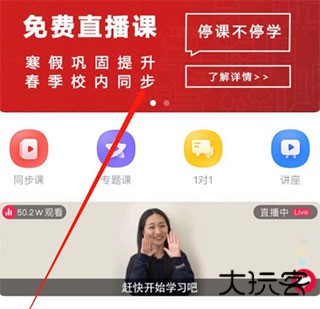 首先打开学而思网校,登录账户,然后在上面找到“免费直播课”窗口,点击进去;