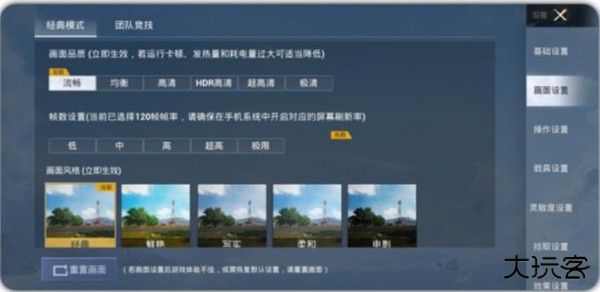 第二步:我们进入软件以后,选择你想要修改的画质。正常打游戏的话,推荐:流畅+120帧率。