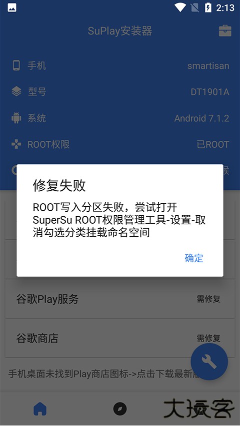 目前Su谷歌安装器只支持免ROOT修复 Android8.0-9.0-10.0的手机,请ROOT用户在应用请求ROOT权限时给予拒绝,已允许的用户可以到权限管理工具中手动拒绝Su谷歌安装器的ROoT权限。