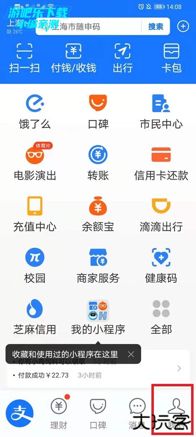 1、打开支付宝,在首页点击右下角【我的】进入到我的界面中;