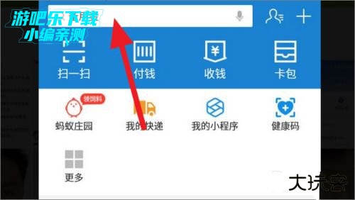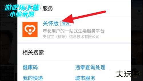 1、首先打开手机上的支付宝关怀版app,打开后点击界面上方的搜索框。