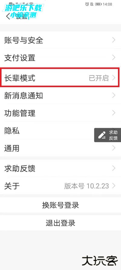 3、在设置界面中点击【长辈模式】进入功能界面;