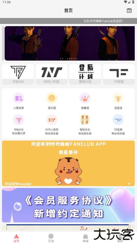 时代峰峻Fanclub最新版又称TF家族-Fanclub,这是一款以福利回馈为核心的官方粉丝俱乐部的应用软件。该软件不仅界面优化的特别的好,功能也是非常的丰富,例如拥有商城,会员动态,福利,粉丝等多个板块的内容,同时在这款软件粉丝们还可以第一时间了解到他们的演出信息以及实时了解爱豆动态,从而解锁全新的追星体验!