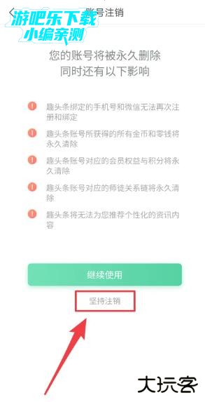 在【账号注销】界面,点击【坚持注销】按钮。
