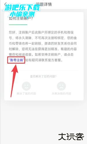 在【问题详情】界面,点击【账号注销】按钮。