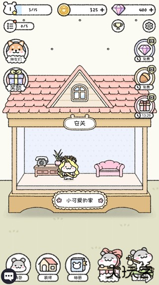 4、通过游戏后获得星星奖励,可以给小仓鼠的家进行装修