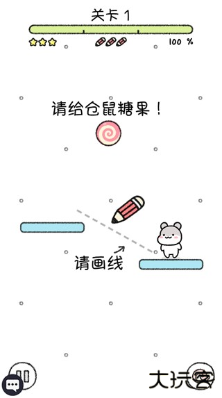 3、通过划线使掉落的糖果能够直接落入小仓鼠