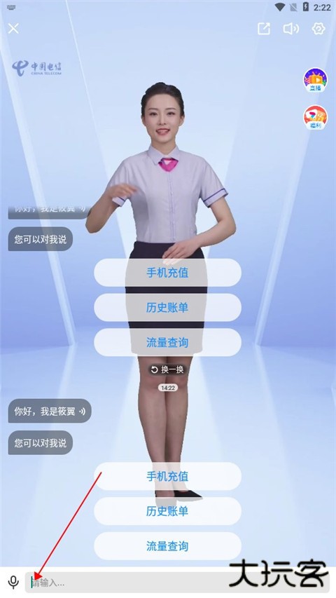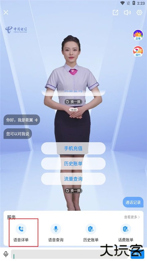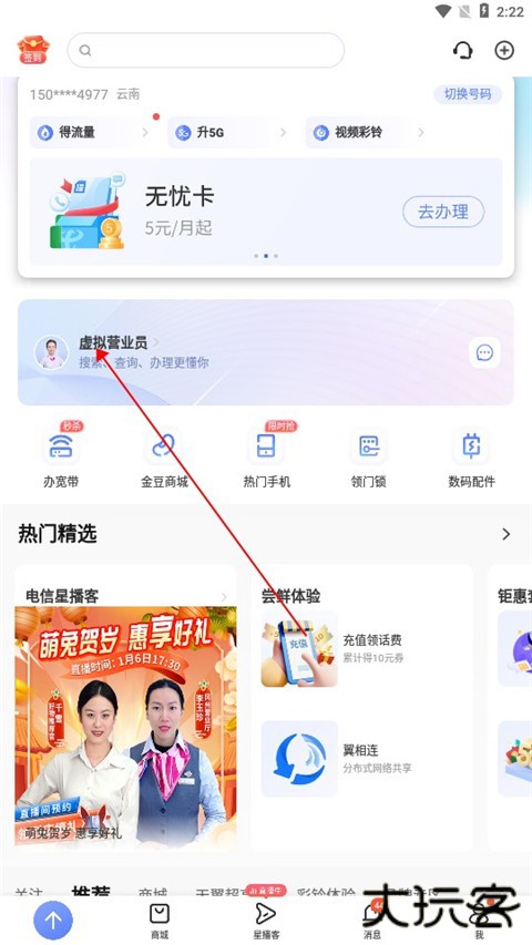 1、在本站下载安装并打开电信营业厅app,在首页找到虚拟营业员进入页面。
