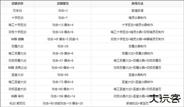 物品合成系统是游戏的重要板块,玩家击杀怪物之后,可以获得各种材料,玩家进入合成菜单下,可以使用这些材料合成武器和护具,当与boss战斗时,合成功能变得尤为重要。装备列表如下: