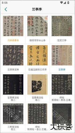 2、选择一个字帖点击进入,比如“兰亭序”;