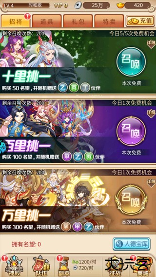 3、十里挑一每天5次免费的机会不要浪费了,到了后期体力很宝贵,不可能回头去刷低级伙伴,一些高级伙伴合成需要的低级伙伴就靠十里挑一了。