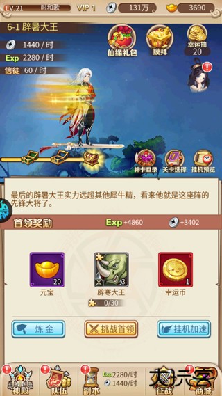 3、战斗主要是闯关类型的,挑战首领获得的奖励更多;