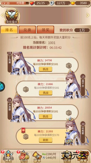 7、当神职到达“玉清至圣”后,点击【征战】便可参加竞技场比赛