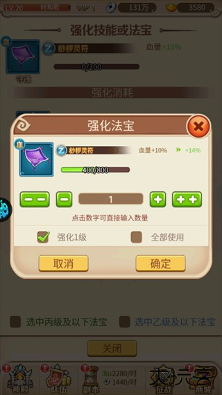 2、护法中可以与上阵伙伴进行配缘,把它利用起来,增强实力。