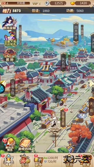 8、【仙府】中还有天街、征服大陆、天机阁、道侣、四大神迹、天书院等丰富的内容等待玩家体验