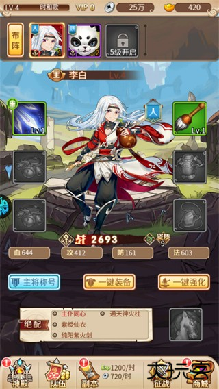 1、游戏是竖版的界面,放置挂机类玩法,比较轻松;