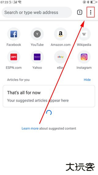 1、打开手机谷歌浏览器,点击右上角的菜单按钮