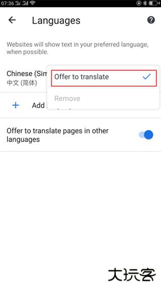 7、在弹出的菜单选项中选择offer to translate功能,这样手机浏览器就显示为中文了