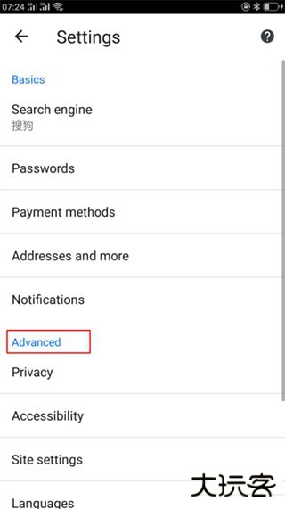 3、进入Settings设置界面,找到Advance模块