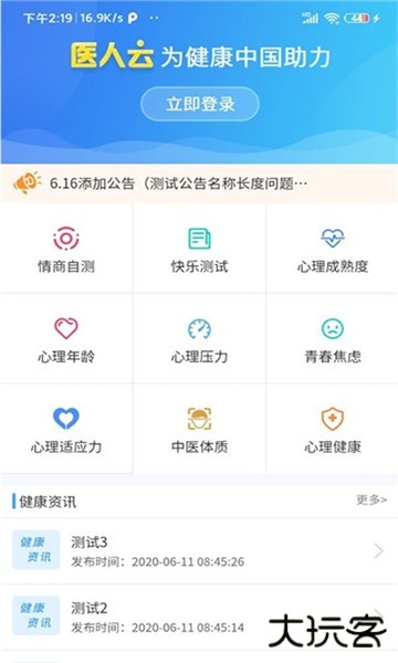 1、立即点击该软件并进入主页,查看页面中显示的各种测试服务