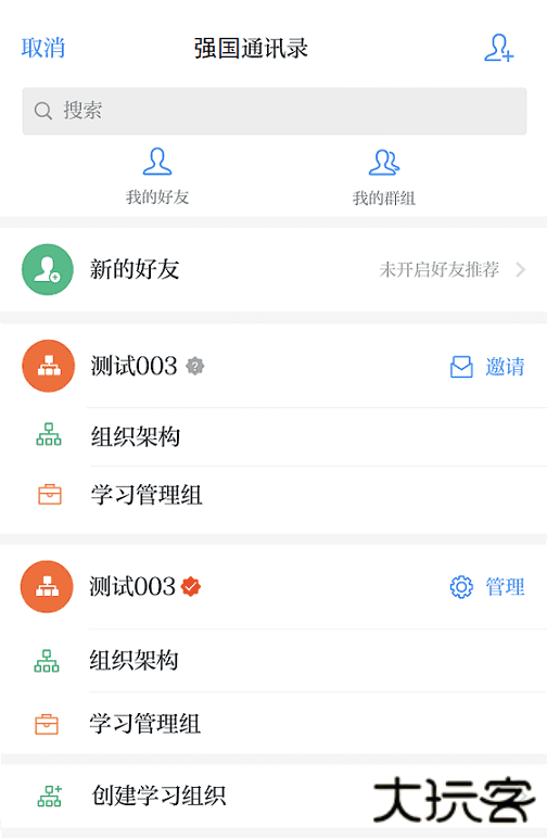 查看加入学习组织信息,邀请同一组织内成员加入