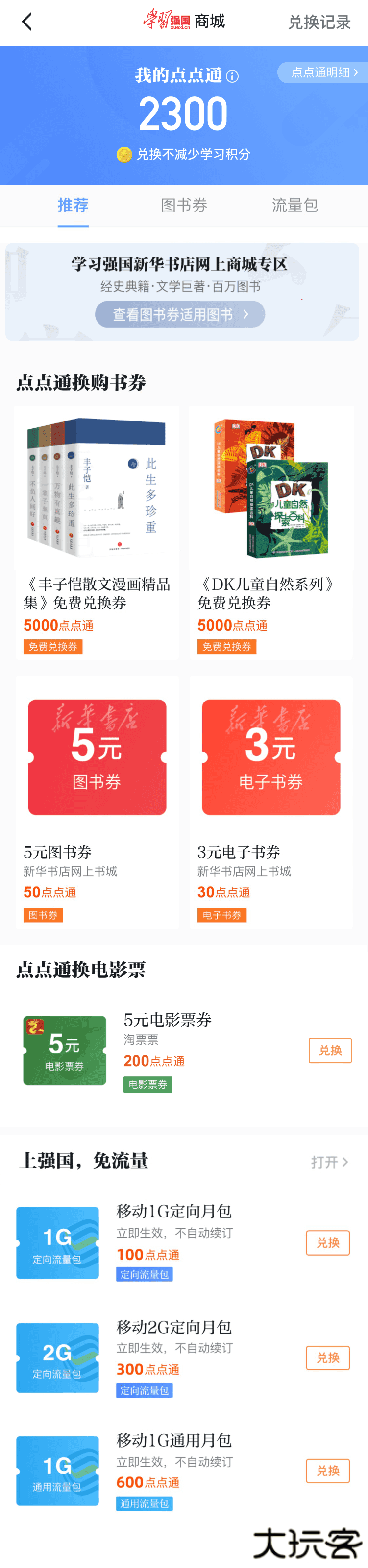 可前往强国商城使用“点点通”兑换礼品,“点点通”通过独立的规则获取。