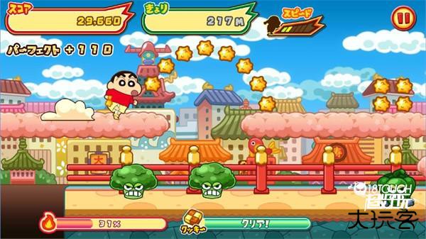 1、操控蜡笔小新,体验超萌的跑酷乐趣。