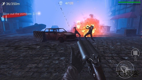 在城市中,由于僵尸病毒的爆发导致街区一片混乱,想到打到更多僵尸要学会利用场景内的汽油桶,打破汽油桶可以造成范围伤害,对于普通僵尸基本一击必杀。