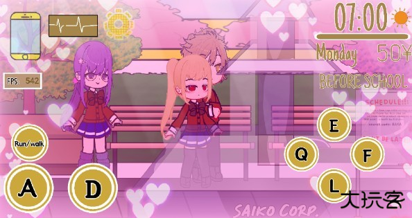 3、在户外场景中,玩家可以寻找作案道具,然后将其他女生杀害,或者单纯的与男神见面(按L可以做出病娇表情)