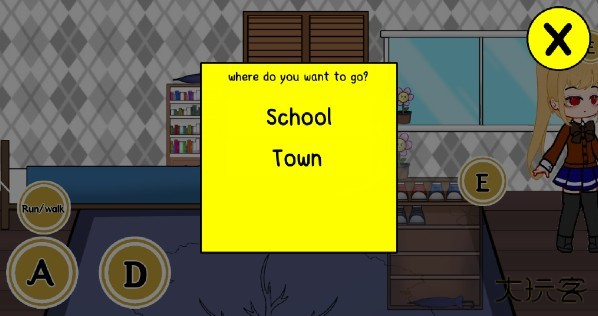 1、开始游戏后,玩家可以通过左下角的AD按键控制人物左右移动,E是互动键