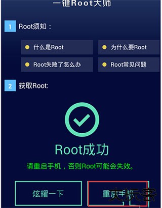 3、按提示点击开始root后,界面提示;