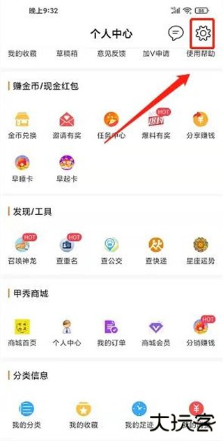 4、进入个人中心界面,点击页面右上角【设置图标】。