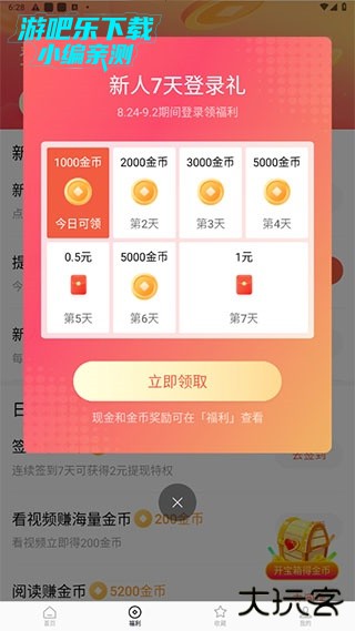 4、登录之后每天都可以签到领取收益,累计签到的天数越多奖励越多,还可以做任务。