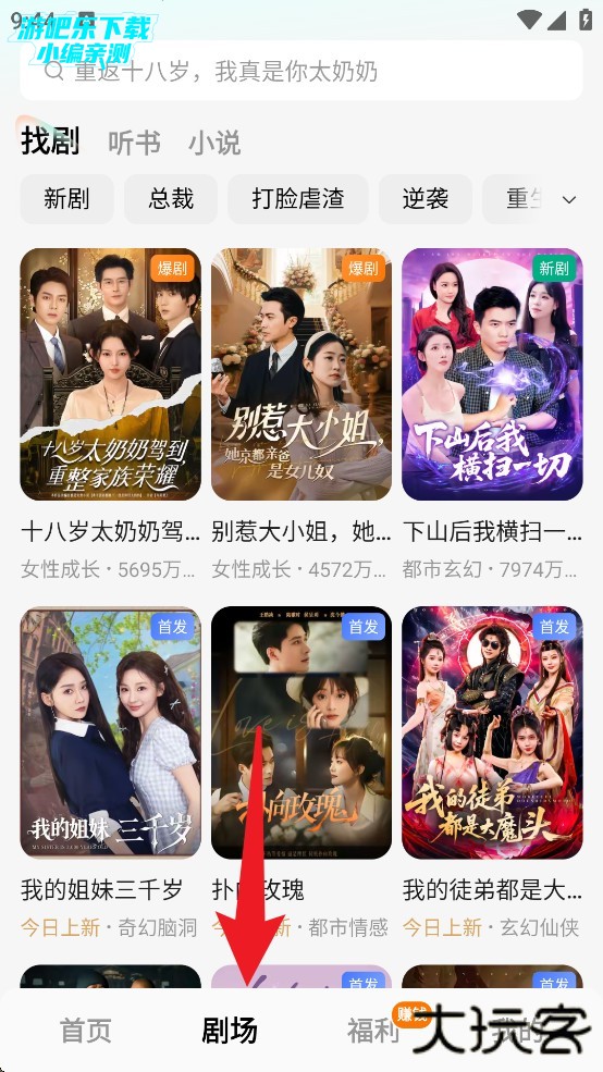3. 点选底部导航栏的「剧场」页籤,可依分类快速寻找总裁、逆袭、仙侠等类型的短剧。