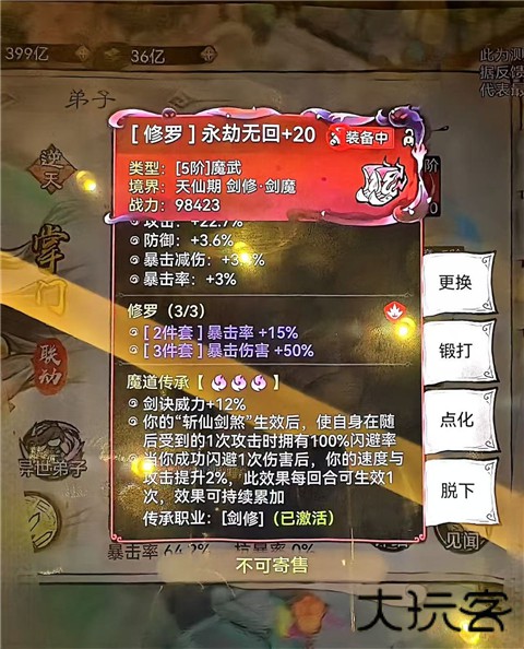 激活剑修职业,适配《天外飞仙》心法,闪避流核心战甲